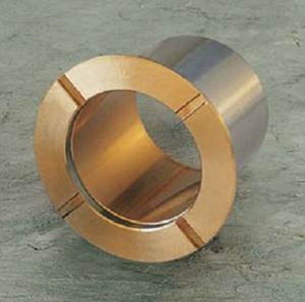 SAE-797 Steel With CuPb10Sn10 Track Roller Bushing Indents Welding Flange Type is made of high quality low-carbon steel(CuPb10Sn10 or CuSn6Zn6Pb3)and sintered and rolled copper alloy as its surface.This product uses copper alloy as sliding material in contact with the shaft, providing good lubrication and protection functions to the shaft and shaft shoulders. The base metal is steel, resulting in higher load bearing capacity, and reduced the material cost.They are important parts used in engineering machines.